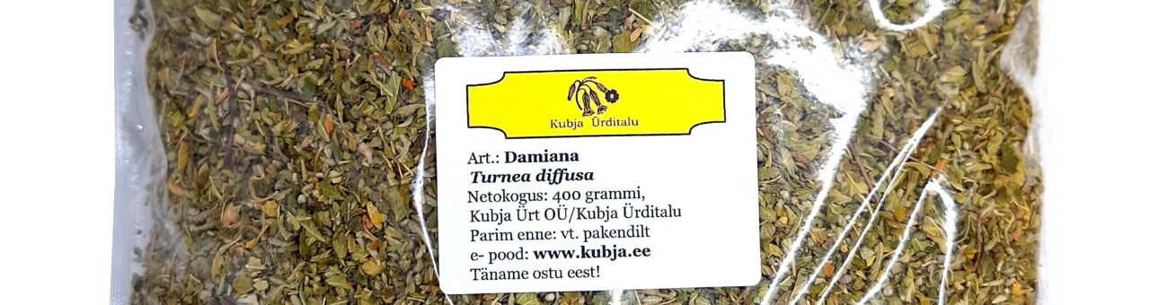 Ladina – Ameerikast pärineva taime – Damiana(Turnera diffusa) – lehtedest valmistatud tee. Väga aromaatse lõhnaga ja omapärase maitsega tee. Joo … Jätka Damiana 400 grammi – Turnera diffusa lugemist