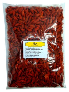 Hiinast pärit hea kvaliteediga gojimarjad suures 500 grammises vaakumpakendis. Hea lisada toitudele ja erinevatele teesegudele värviks ja maitseks.