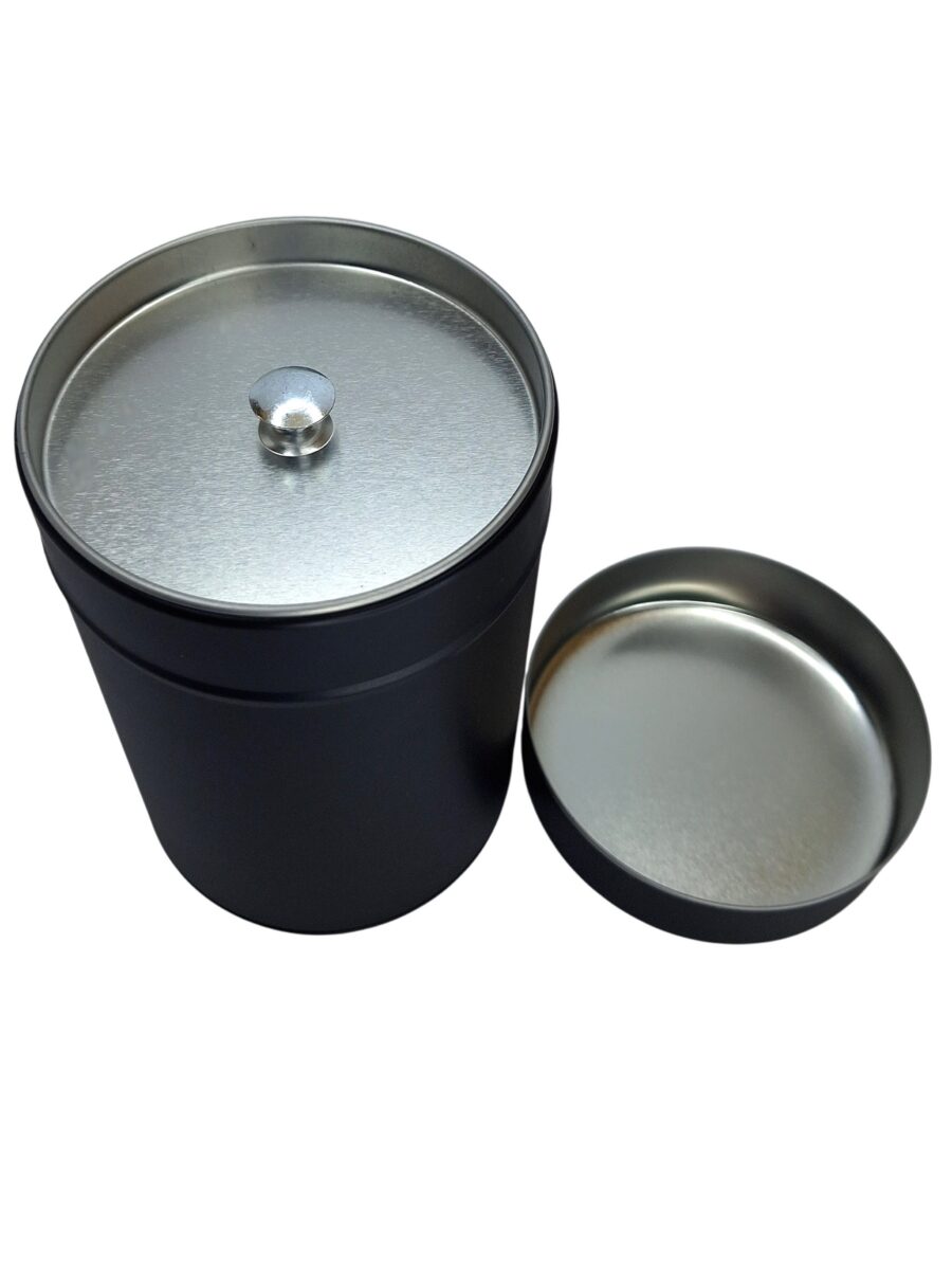 Matt must metallkarp kaanega, seest hõbedane. Sisemise kaanega.