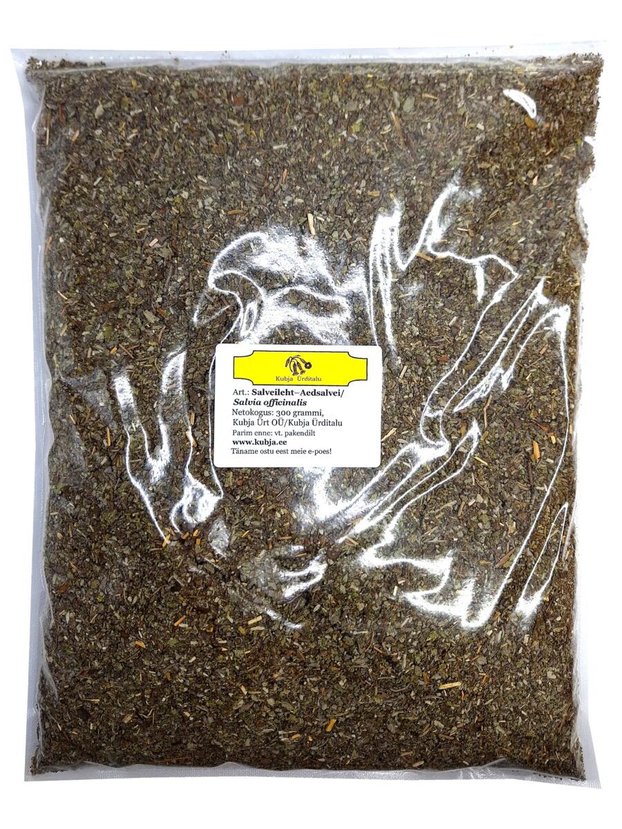 Kuivatatud ja peenestatud Salveileht – (Salvia officinalis) 300 grammises pakendis.