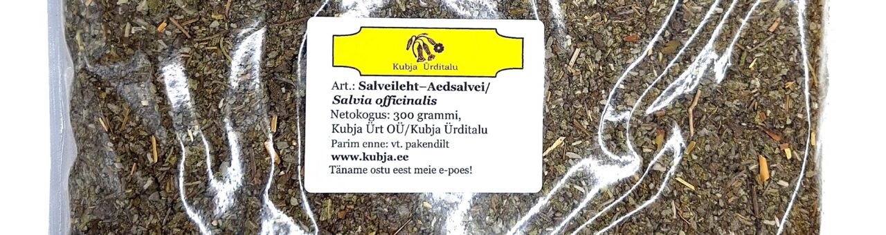 Kuivatatud ja peenestatud Salveileht – (Salvia officinalis) 300 grammises pakendis. Valmistamine: 1 tl/200 ml/100C/ 5-10 min Päritolumaa: Eesti
